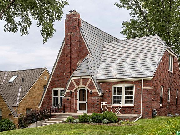 1.5-story brick Tudor by architect E.J. Sessinghaus brimming with historic charm & modern comfort! From original hardwood floors to arched doorways & unique tile designs, every corner shows off authentic period details & personality. DaVinci roof, brick exterior embellished w Bedford cut stone. Spacious, sun-filled living room features cozy fireplace. Large formal dining room flows into charming kitchen w SS appliances, extra storage, & breakfast nook. Two main floor bedrooms, full bath boasting original pink tile w vanity area. Upstairs, serene primary suite feels like a retreat w 20 ft cathedral ceilings, generous closet spaces, laundry, & full bath! Finished basement w more living space complete w storage. Backyard provides private patio for alfresco dining or simply enjoying the peaceful surroundings. Prime location in Country Club, just seconds from Metcalfe Park, Dundee, Benson, Downtown.