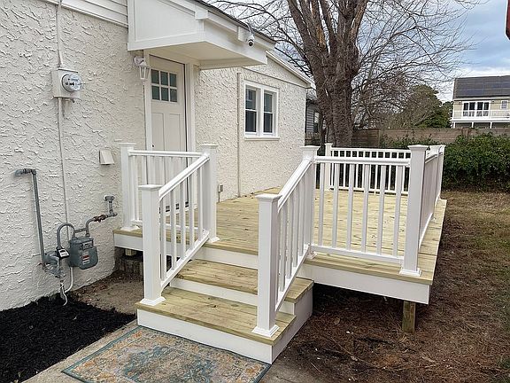 -New deck with vinyl railings.