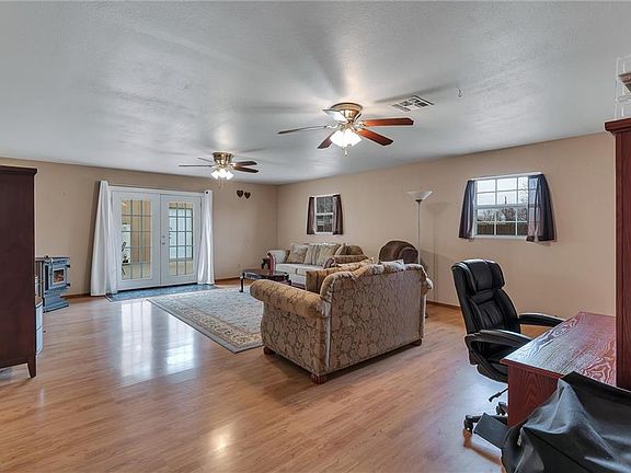 Nice 4 bedroom, 2 1/2 bathroom home on large corner lot. Large dining room and kitchen are open. Kitchen features lots of cabinets, gas stove, dishwasher, built in microwave and French door stainless steel refrigerator. Some cabinets have pull out shelves and there are 2 Lazy Susans. Large eat in snack bar. The living room is especially large and has enough room for office space. Also features a pellet fireplace and double doors leading to the patio. Primary bedroom has an adjoining bathroom with jetted bathtub. Two bedrooms are on one side of the house and two are on the other side. Detached 30' x 40' garage/shop with electricity, 2 door lifts, toilet and sink. Fenced back yard. Exterior of home has been recently painted. New water heater. Large AC unit. Nice home will not last long. Call for an appointment today.