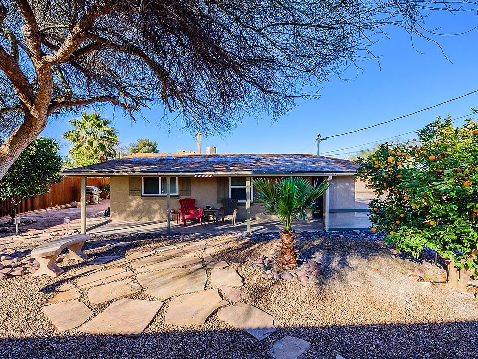 Entertainer's dream! Are you looking for a unique home, mountain views, upgraded interior with granite countertops and stainless steel appliances, privacy, HUGE double lot, and in the heart of town?? You can have it all in this property! 2 bedroom split floorplan with private access, 2 car detachable garage, huge carport , large shed for storage, big custom chicken coop with 30 foot run, outdoor living room perfect for Tucson's desert nights, mini golf course, meditation area, custom wood gazebo, huge u shaped driveway with plenty of room for parking or RV, lots of mature citrus trees, solid custom metal fencing with 2 gates for vehicles around entire lot perfect for privacy and entertaining! There's too much to list! This home won't last long!!!