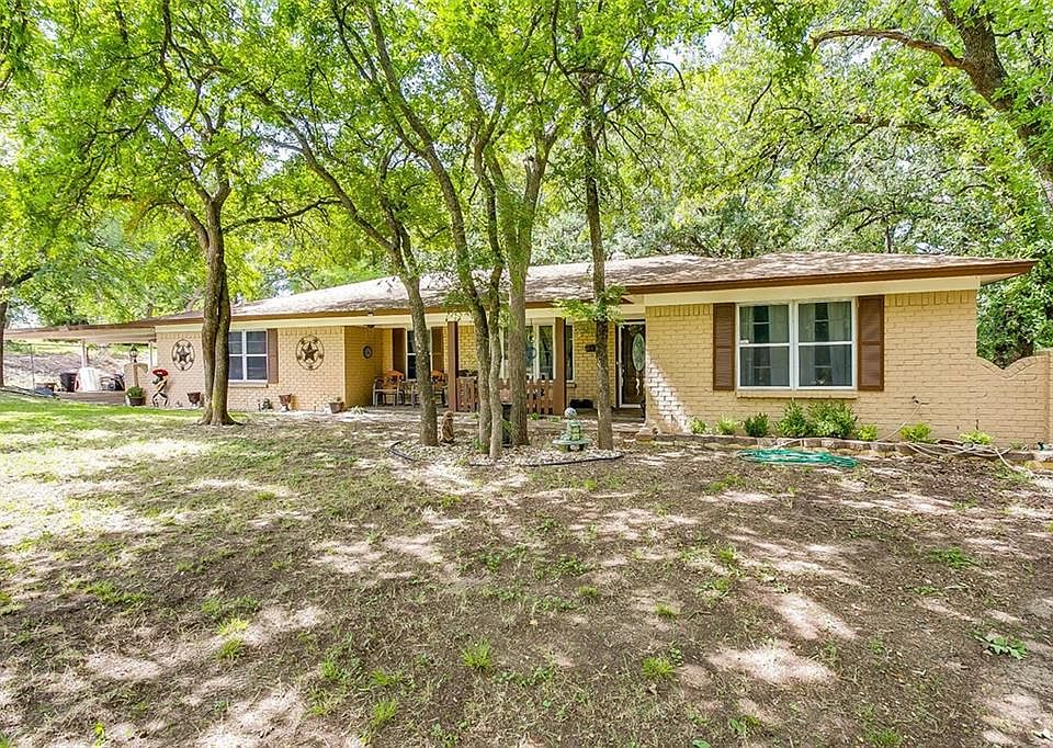 Peaceful country living in this delightful home. Has dining, two living, eat-in kitchen, flex room, and storage galore. Kitchen updates include granite countertops and stainless steel appliance and a new vent-a-hood. Den has full masonry wood-burning fireplace and opens into the 22-foot sunroom. Over-sized carport. Beautiful, heavily-wooded lot features huge oaks, native grasses, backs up to creek and horses are allowed. Water Softner. No City Taxes. Sits on over two acres.** NEW ROOF INSTALLED** July 2019.