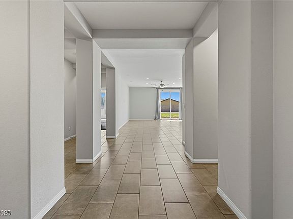 Just 50 minutes from Las Vegas, this beautifully designed single-story Logandale home offers space, style, and mountain views. The open-concept floor plan is filled with natural light, featuring a great room and chef’s kitchen with granite countertops, stainless steel appliances, walk-in pantry, rich cabinetry, and oversized island with seating. The private owner’s suite boasts dual walk-in closets, double vanities, soaking tub, and separate shower. Tile flooring in main living areas and neutral finishes throughout create a move-in ready feel. Outdoors, enjoy a 3-car paver driveway and walkway, expansive rear paver patio with three-panel sliding door access, plus RV parking. The finished 3-car garage includes epoxy floors, storage racks, and a water softener. Set on a large lot in a tranquil neighborhood with easy access to schools, shopping, and recreation.
