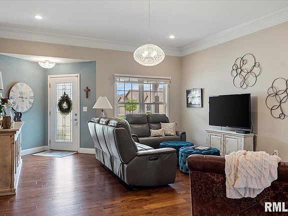 Welcome to 1517 Pine Creek in Springfield, IL! This charming duplex nestled in Kreston Place offers 3 bedrooms and 2 full bathrooms, designed with convenience and style in mind. The zero-entry front and garage doors make it an ideal choice for an age-in-place home, ensuring accessibility for years to come. Step inside to discover the allure of custom craftsmanship, with extra maple cabinets added in 2019, featuring a wine rack and wine refrigerator, stainless steel appliances including a double oven, and new quartz countertops. The spacious island provides ample seating and flows seamlessly into the open floorplan, perfect for hosting both casual get-togethers and formal gatherings. Both bathrooms boast exquisite updates, showcasing new vessel sinks and granite countertops. The primary bath even offers the option for a double sink with existing plumbing in place. Upgrades continue throughout the home, with upgraded carpeting, stunning scraped engineered hardwood floors, and a corner gas fireplace. Enjoy outdoor relaxation on the covered back deck, offering privacy and serenity with no backdoor neighbors. Additional features include a new A/C installed in 2017, the option for the washer and dryer to stay, and the opportunity to purchase the home fully furnished. Don't miss the chance to make this exceptional property your own—schedule your showing today and experience the epitome of comfortable living.