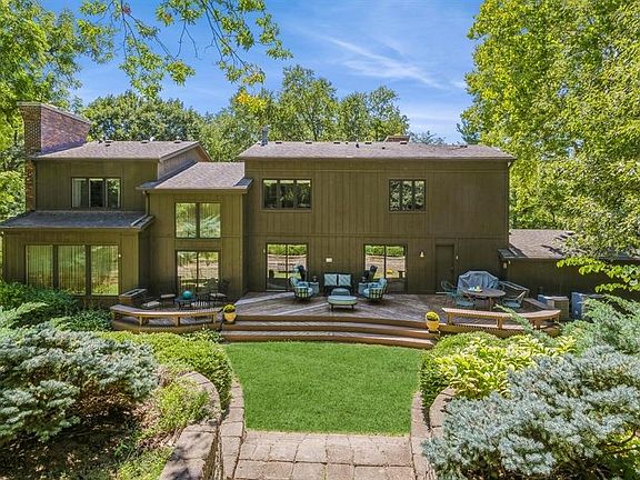 Gorgeous custom family home, located on a private garden lot in Druid Hill. This contemporary Mid-Century home has so many features & quality details. The large entry terrace opens on to a sunny & light filled interior-a spacious living room with a travertine wood burning fireplace and window walls overlooking the terraced garden yard. An adjoining formal dining room has floor to ceiling windows & a limestone built–in serving buffet. Recently update Maple hardwood floors lead to a 1st flr bedroom suite &  library/office with a slider entry to the spacious side to side two level deck.  Adjoining the office, is a wet bar that opens to the family room/kitchen. A spacious kitchen was redone with newer appliances & granite counters- featuring maple cabinets & new lighting. The laundry room is adjoining-complete with a sink, cabinetry & tile floor.  The Primary Bedroom has a LG walk-in closet, fireplace, BR ensuite w/a travertine tub surround, 2 sink areas & a  toilet and shower room. On 2nd FL are three good-sized bedrooms-one with its own ensuite bath and a 2nd hall bathroom. The fantastic LL has egress windows with tons of light, brick fireplace, wet bar, pantry area and a fifth bathroom. Several large storage areas. This property has many mature trees & perennials! Close to fine dining, Greys Lake, Downtown, schools and shopping.  You must get inside to see this one-of-a-kind home. This home is being sold "As Is".
