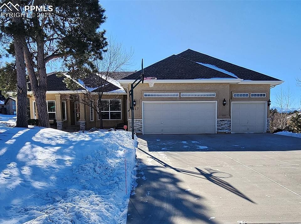 This beautifully maintained ranch-style home is situated on a spacious .52-acre corner lot with mature landscaping, offering both beauty and scenic views. The open-concept floor plan features a large great room with a gas fireplace, a well-appointed eat-in kitchen with an island, separate breakfast nook, and a formal dining room that's perfect for entertaining. With 5 bedrooms, 3 bathrooms, and plenty of storage, this home has something for everyone. The main level boasts a private master suite with a gas fireplace, a 5-piece ensuite bath, and a walk-in closet. Two additional bedrooms are located on this floor, one with French doors, ideal for use as the 5th bedroom or an office/study. The main level also includes a full bathroom, a laundry room, and a fully finished, insulated 3-car garage with 11-foot ceilings. Hardwood floors can be found in the entry, kitchen, and kit. nook areas. Additional features of this home include central air, a humidifier, 2x6 construction, and high-end stainless steel GE kitchen appliances in 2017. New 50 gal. gas water heater, and new GE SS dishwasher replaced in 2024. New roof was installed in 2021. Two refrigerators and a mini fridge are also included. The finished walk-out basement offers 9-foot ceilings and ample space for entertaining or relaxing. The large family area includes built-ins, a TV niche, a wet bar, and a third gas fireplace. Two bedrooms, connected by a Jack-and-Jill bathroom, and a spacious unfinished storage room complete the lower level. Enjoy outdoor living on the rear deck or lower-level flagstone patio, perfect for hosting guests or simply relaxing while taking in the views of the professionally landscaped yard with mature trees and roaming wildlife. Located in the award-winning Lewis Palmer School District (D-38) and offering easy access to I-25, this home is just a short drive to both Colorado Springs and Denver. A true gem just waiting for you to add your touch and call it home.