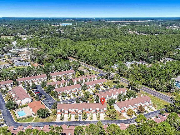 Freshly painted - light and airy - Kitchen appliances included. Corner unit 3 bedrooms and 2.5 baths with wood burning fireplace, back patio, single car garage, carpet and tile flooring. PRICED TO SELL! HOA fee covers internet, cable, water/sewer, grounds maintenance, saltwater pool, exercise room and trash. The HOA assesses annually for insurance and payment schedules are flexible. Just a short drive to the beach. Fogged window in living room will be replaced in the next few weeks.