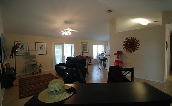 ASSESSMENTS ARE PAID IN FULL - This property is well maintained and offers an open floor plan with vaulted ceilings, 16-18 inch tile throughout the kitchen, dining and main living areas of the home, wood floors in the master bedroom and den, with carpet in the second and third bedrooms. The master bathroom has dual sinks, separate bathtub, separate shower and walk in closets. The kitchen is finished with stainless appliances, flat top stove and includes a nice view of the large fully screened in private pool, including a sun shelf and water fall feature. A variety of landscaping along the perimeters offers privacy and serenity whether your on the deck or in the pool. Note: Pool patio furniture is like new and could convey should buyer decide.