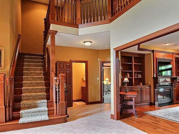 Custom in every way & on a premium golf course lot beautiful Sand Creek.Spacious on all levels & up to 6 usable bedrooms.Main level master suite & well appt'd bath area.Ample closet space. Don't overlook 2 stry library any professional will enjoy. Great Room features FP & disappearing TV. Formal dining has volume ceiling perfect for family gatherings. Working kitchen w/ lg dinette space.Cherry cabinets w/ pecan finish fireplace w/ warming shelf.Back staircase convenient for children. Upper level features 3 lg bedrooms and huge closets. 2 full baths each w/ dbl vanities, warming towel racks.Large open family room w/ fireplace and bonus area including a snack room. This home was truly build with family in mind. Basement has 2 additional bedrooms Addt'l rooms dedicated to work out space, future theatre room and billiard room.There is a dumb waiter useable from all 3 levels.3 car side load garage for the true golfer w/ addt'l heated cart garage. As an added plus lg sitting porch w/hot tub.