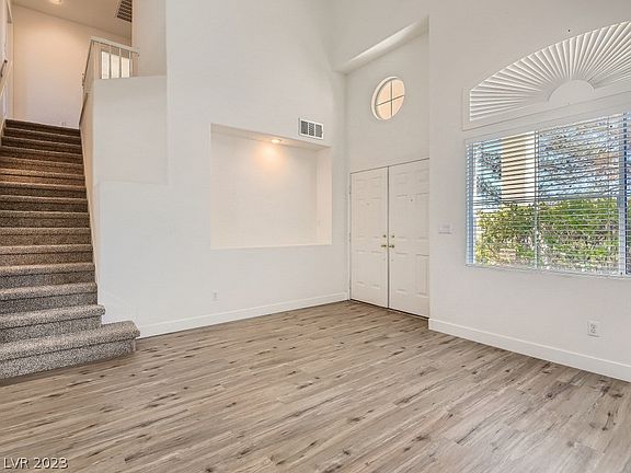 YOU’LL LOVE THIS 2 STORY HOME IN SUMMERLIN NORTH.THE DOUBLE DOOR ENTRY OPENS TO A LIGHT AND BRIGHT HOME W/BRAND NEW PLANK FLOORING & CARPETING T/O.VAULTED CEILINGS & LOTS OF WINDOWS CREATE A PLEASANT ATMOSPHERE.THE FAMILY ROOM FEATURES A GAS FIREPLACE & MEDIA NICHE’ & ITS CONVENIENTLY ADJACENT TO THE KITCHEN / DINING AREA.IN THE KITCHEN YOU’LL FIND NEWER APPLIANCES,ABUNDANT OVERHEAD LIGHTING,LOTS OF CUPBOARDS & COUNTER SPACE.THERE IS ALSO A BREAKFAST BAR FOR MORE CASUAL DINING.SEP LAUNDRY ROOM W/FULL SIZE WASHER & DRYER INCLUDED.CONVENIENT DOWNSTAIRS 1/2 BATH & UNDER THE STAIRS STORAGE. ALL BEDROOMS ARE UPSTAIRS-THE MASTER IS SITUATED SEPARATELY FROM THE OTHERS W/LIGHTED CEILING FAN & WALK-IN CLOSET. BOTH SECONDAY BEDROOMS HAVE A VIEW OF THE STRIP/CITY LIGHTS. BRAND NEW HVAC INSTALLED JULY 2022 & EXTERIOR STUCCO WAS PAINTED IN SPRING 2022. THE LOT HAS VERY MATURE LANDSCAPING IN FRONT & BACK. THE SUMMERLIN AREA OFFERS MANY AMENITIES! BUYER TO VERIFY ALL INFORMATION/SCHOOLS.