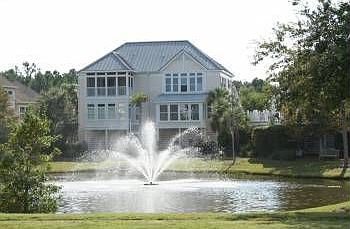 This end unit townhome, minutes from the gorgeous beaches of the Isle Of Palms and Sullivans Island, is conveniently located within walking distance to shopping and restaurants at Seaside Farms. Upon entering the main living floor you will find many upgraded features including antique heart pine flooring, crown moldings ,custom ceramic tile floors and granite counters in kitchen. Separate dining room, large living room with extended sunroom overlooking tranquil landscaped pond and a guest suite complete this floor. Upstairs is a large well-appointed master suite overlooking the pond , another guest suite and a laundry room plus bonus storage areas. The elevated townhome has a large weatherized garage area that can accommodate several vehicles and a landscaped patio with grilling area. This home is also elevator ready. The Marais complex has a pool for residents and walking trails throughout