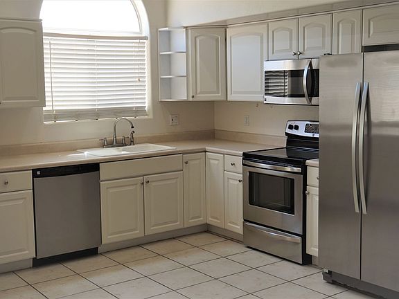Welcome to your dream home in Sierra Vista, AZ, conveniently located near Fort Huachuca. This stunning property boasts three spacious bedrooms and two full bathrooms, offering ample space for comfort and relaxation. The home features a cozy fireplace, a breakfast nook for your morning coffee, and a three-car garage for all your storage needs. The vaulted ceilings add a touch of elegance, while the dual sink vanity, bay windows, and walk-in closet provide a luxurious living experience. The house also includes a family room, formal living room, office/den, and pantry, ensuring you have all the space you need. The dual pane windows and stainless steel appliances add a modern touch, while the block wall and covered patio offer privacy and outdoor enjoyment. The large enclosed backyard is perfect for outdoor activities, and the garden tub is ideal for unwinding after a long day. The en suite primary bathroom adds an extra layer of convenience, and the breakfast bar is perfect for casual dining. The house is cooled by A/C, ensuring comfort during the hot summer months. Washer and dryer hookups are included for your convenience. Tenant is responsible for all utilities.