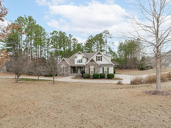 Welcome to The Reserve, an enclave of luxury custom-built estate homes nestled on expansive tree-lined lots. This 5 bed, 3.5 bath home boasts 4,305 sqft of living space and is situated on a corner lot with a circular drive and serene wooded backdrop, creating a private oasis. Upon entering through the grand double doors, guests are greeted by a lavish interior featuring 10' ceilings, gleaming hardwood floors throughout, arched entries, custom woodwork, and impeccable finishes throughout. The functional layout of this home offers both luxury and practicality, with the primary bedroom suite conveniently located on the main floor, featuring a double trey ceiling, luxurious bathroom with a freestanding soaking tub and walk-in shower, and a large walk-in closet with built-ins. The main floor also includes two additional bedrooms (or optional office space) with a shared Jack and Jill bathroom, a mudroom with custom shelving and doors, a laundry room with cabinets and sink, and an open floor plan seamlessly connecting the chef's gourmet kitchen with the family room and large breakfast area. The second floor is dedicated to entertainment and relaxation, featuring a full theater room, two large bedrooms, a bonus room with a wet bar, a full bathroom, and extra walk-in attic spaces for storage. The outdoor space is an entertainer's dream, featuring a pool-ready backyard and an extensive patio with a stone fireplace and ample outdoor seating. Host any number of guests with extra parking, a side-loading 3-car garage, and an extended parking pad providing versatility and convenience. All appliances, TVs, and theater room furniture/equipment convey.