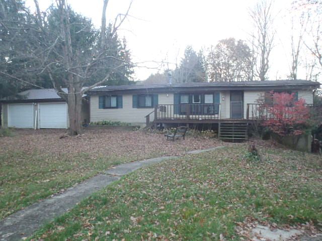 This three bedroom home with 2 baths has all the privacy a buyer could want, it sets in a wooded area over a basement and has a pass-thru 2.5 car garage attached by breezeway. Needs a bit of TLC but can be really nice, also includes a pole building/workshop/storage building. Property sales subject to 3rd party approval.