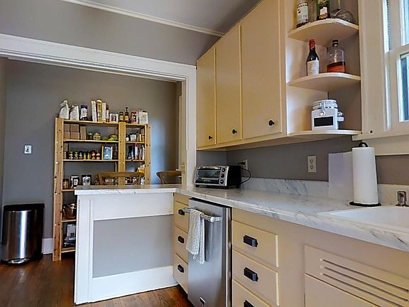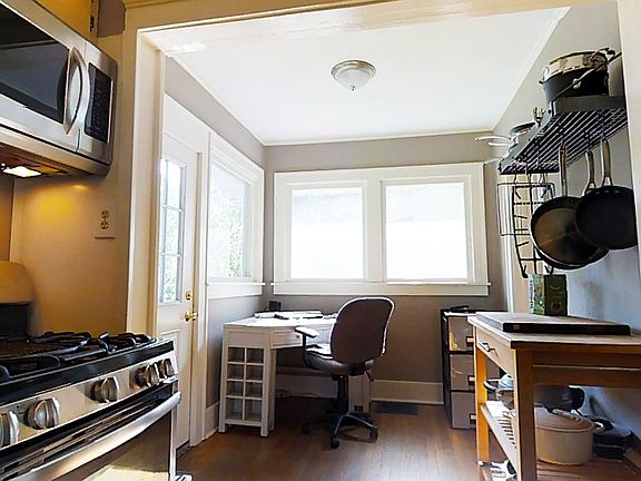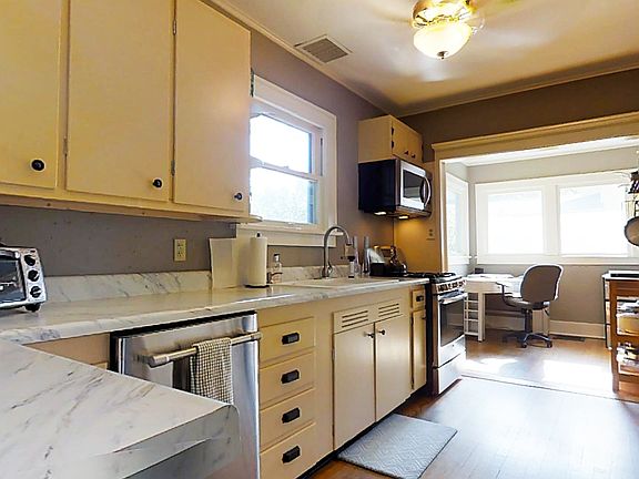 Charming home with hardwood and updates throughout! Make sure to take the 3D tour for the best on line experience too! https://my.matterport.com/show/?m=xvi31WfeDz8 . The main floor features a living room with a fireplace and built-in bookshelves. The dining room has French doors and great lighting. An eat-in-kitchen includes a breakfast bar, room for storage, all appliances including a gas range, next to either a breakfast nook or currently great space for an office. There are 2 bedrooms on main floor and full bath. 2nd floor has 3rd bedroom option or bonus room. Full basement includes laundry and awesome storage space, use it as a a bonus living area for exercise too! Fenced back yard and a 2 car detached garage complete this cute home.