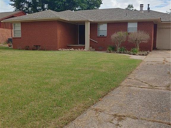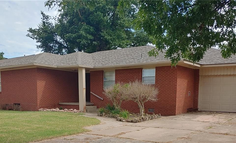 Charming, vintage brick home available in a great neighborhood! Mid-Century Modern homes are still on trend for 2021! This home is priced just right for needing a little bit of enhancing cosmetic work, but having some updates already. Sitting on a large lot with two outbuildings and an enclosed porch (can be used for optional living space) gives this home so much storage! New Roof in 2020! New sewer line from house to street, new plumbing! Inside, you will appreciate the original hard wood floors, masonry statement fireplace, built-in books shelves, updated kitchen cabinets, roomy bedrooms, new hot water tank, the extra half bath, tandem garage with cabinets for storage and an insulated garage door! Refrigerator stays with a good offer! Property is clean and tidy! You will be close to shopping, schools, parks, Redlands Community College, 6 minutes from El Reno Lake, and US Route 66!