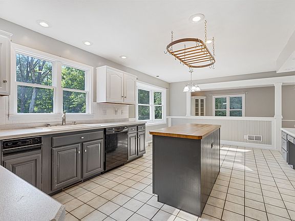 Rare opportunity to own this beautiful home! This distinguished, private & wooded area right down the street from Krape Park offers both privacy & convenience. The entryway welcomes you into this spacious home with an abundance of natural light. Formal living room with large picture windows overlooks the side yard with tons of mature trees. The kitchen is the heart of the home, offering a center island, plenty of upper & lower cabinets along with ample work room. Entertaining is made easy with the dining room conveniently located adjacent to the kitchen & room for a large table. Off the dining area are French doors leading to your private deck! The spacious living room boasts a wood burning fireplace, vaulted ceilings, wet bar, & a gorgeous beam with natural wood work. On the main level you will also find a large screened in porch, convenient main floor laundry, & a half bath. Working at home? No worries, there is also a main floor office with built-in bookcases. As you head upstairs, you will find three generous bedrooms and a full bath with a double sink vanity. All bedrooms have a wonderful view, as well! In the opposite direction awaits the balcony heading to the primary suite, which offers two large closets, a private bathroom with double vanities & a jetted tub! The lower level has a large finished area with a wet bar, wood burning fireplace, & built-in book cases. Plenty of room for movie night & activities. Additionally, there is another full bath & an extra room that can be used for anything your heart desires. The utility room offers ample storage options, as well! The backyard is a serene retreat that is sure to please; 1.44 acres of lush grass & mature trees all around. Plenty of wildlife habitat year-round. Working, entertaining, or just relaxing is made easy in this home!