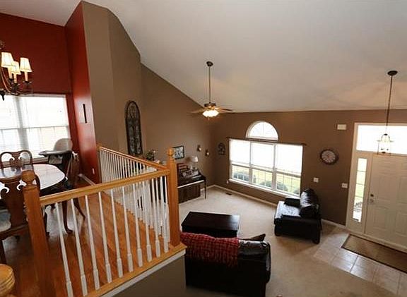 Spacious Raymore 4 bedroom/3bath California Front to Back Split located in desirable Stonegate of the Good Ranch! Open & impressive layout features: stunning 19x15 Master Bedroom, finished walk-out lower level & soaring vaulted ceilings with tons of light, new carpet for next owner (see bid) PLUS washer, dryer & refrigerator stay . . . completely turn-key! New roof also offered with full price offer at value price of $219,900! Fabulous Stonegate opportunity . . . just blocks from elementary school & walking trails.