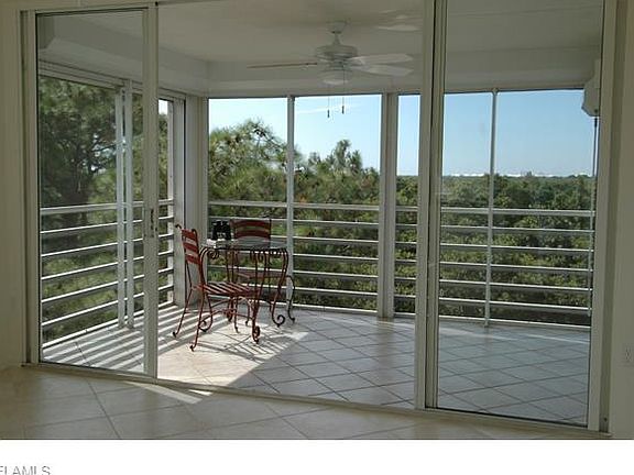With a $50,000 reduction in price, you should take another look at this fabulous condo. Almost everyone who walks through the front door and sees the awesome view says: WOW. Check these off your list: plenty of living space and extra storage, resort-style active club, low maintenance fees, gated community entrance leading into a forest surrounding two lakes, more than two miles of walking paths, a pier on Little Hickory Bay with storage for canoes and kayaks, awesome sunsets. This very private end residence on the fifth floor overlooks the tops of the trees in a nature preserve so it is bathed in light from the east, south and west. A great room combines living and dining areas. The corner screened lanai has south and west breezes. There are three bedrooms plus a room off the kitchen that can serve as a dining room or den. The full-sized laundry room has a washer, dryer and laundry tub. A separate 3 x 6 foot storage closet is in the common hall. Naples Walk has a community pool. The Bay Forest club's activities include tennis, bocce, shuffleboard, fitness and water aerobics, book club, cocktail parties, movies, bridge and more.