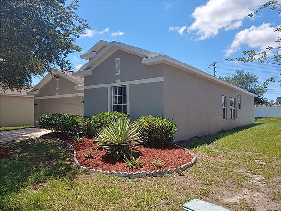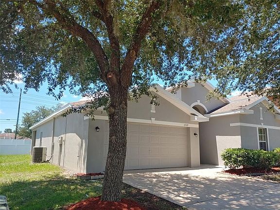 Come see this freshly painted 3 bedroom 2 bath with an office and a covered lanai home. Enter the home and you have two bedrooms and a full bathroom with a tub/shower combo. Continue on and to your left, there is a formal dinning room and to your right a spacious office with french doors. Just past this the home opens up into a large great room with an open kitchen over looking the family room. The master bedroom bedroom is large with laminate flooring. Master bath features double sinks, a walk in shower, garden tub and walk in closet. All the carpet is brand new. Tile and laminate through the main living and wet areas. There is a breakfast area by the sliding doors that lead to the covered lanai. This is a gated community.