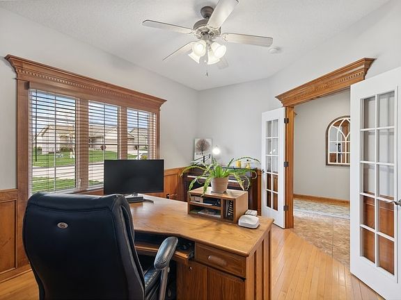 A RARE FIND! You will love this 5bd/4ba 1.5-story home in Clive with over 4,000sf of finished space sitting atop a walkout lot with mature trees. The main floor includes a den with hard wood floors, a large primary bedroom with en suite, beautiful great room with fireplace, large windows, and a dining room. The kitchen has tons of cabinets, SS appliances, granite countertops and a separate eating area that leads to a great new maintenance-free deck with stairs down to the yard. Wrapping up the main floor is a powder room for guests and a laundry room with sink and cabinets. Second floor includes 3 large bedrooms and a full bathroom. The walkout lower level showcases plenty of windows, storage cabinets, a wet bar, spacious seating area, and plenty of room for a game table. The lower also has a 5th bedroom, ¾ bathroom, a bonus room, and plenty of storage! All information obtained from seller and public records.