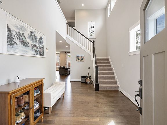 Nestled in a beautifully maintained neighborhood with no HOA fees, this stunning corner-lot home offers the perfect blend of comfort, style, and convenience. Step inside to an inviting open floor plan filled with natural light, accentuated by soaring entryway ceilings. With 5 bedrooms and 3 full baths, this home provides ample space for family and guests. The main level includes a versatile office/bedroom, conveniently located next to a full bath, perfect for multigenerational living or a private guest suite. Designed for both function and style, the chef’s kitchen features quartz countertops, a 5-burner gas stove, a powerful 900-CFM range hood, and sleek stainless steel appliances. The adjoining living area offers warmth and ambiance with its cozy gas fireplace, making it the ideal spot to relax on chilly evenings. Upstairs, retreat to the luxurious primary suite, boasting high ceilings, a walk-in closet, a spa-like tile shower, and a relaxing soaker tub, a true sanctuary after a long day. Step outside to a fully fenced backyard, featuring a covered patio for year-round enjoyment and plenty of space for gardening and play. Parking is a breeze with the 3-car garage, and the home’s prime location offers easy access to I-5, grocery stores, Cook Park, Tigard High School, and Bridgeport Village. Schedule your private tour today and experience its charm firsthand!