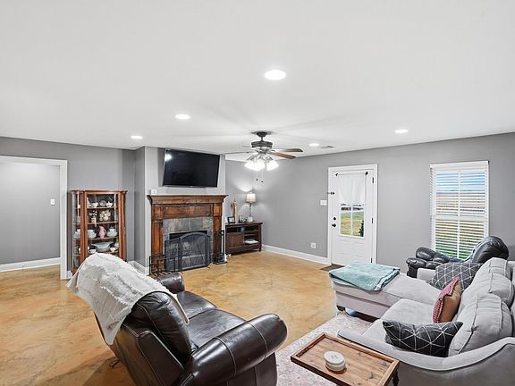 Room to roam with this 4 bedroom 2 1/2 bath home sitting on 4 acres with a pond! Double refrigerator in the kitchen, 20K natural gas generator, tankless hot water heater. Easy care stained concrete floors throughout! Come enjoy country life.