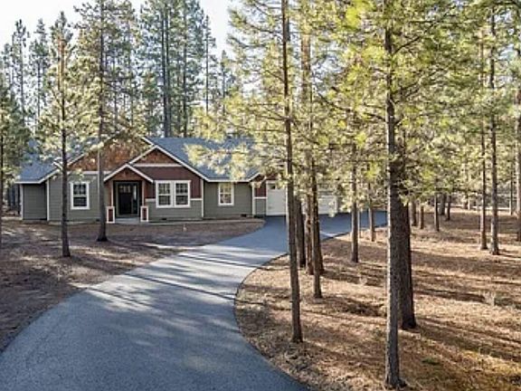 Located in the fabulous Ponderosa Pines neighborhood, this home backs up to over 12,000 acres of forest with great walking and biking trails; and just minutes from the Upper Deschutes River. This is a single level spacious home with 4 bedrooms 2 baths, vaulted ceiling, and an open great room floor plan. The kitchen consists of engineered bamboo hardwood floors, farmhouse sink, granite counters and opens to a 14' x14' covered back patio. Featuring an oversized 2 car garage with shop area which includes a dedicated 220 volt welding outlet - great for a home gym; home office or shop. RV parking pad. Additional 200 amp service for future use. A 20' X 20' shed big enough for all your tools and extra storage with an attached cover. This home features a hot tub paver pad - ready for your hot tub and a large custom play structure perfect for the kids or grandkids. Spacious 1.28 acre lot provides added privacy and plenty of room for an additional shop. HOA fee includes your water usage.