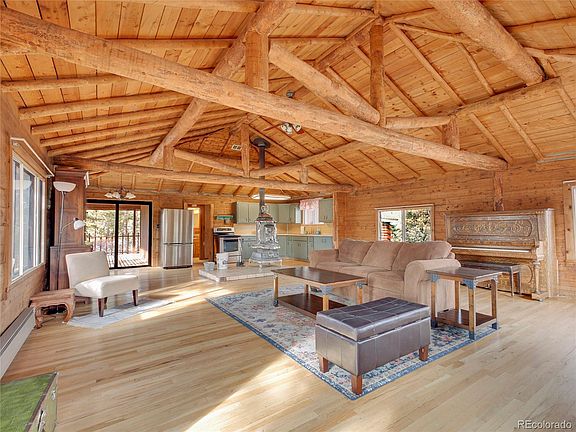 Charming Log Home on Nearly 2 Acres in Pine, CO Welcome to this cozy log home located at 15175 South Huerfano Lane, Pine, CO 80470. Nestled in a serene mountain setting, this two-bedroom, two-bathroom home offers the perfect blend of rustic charm and modern comfort. Step inside to discover an inviting open-concept living space with stunning wood details throughout. The large windows allow natural light to fill the space, providing gorgeous views of the surrounding landscape. Enjoy your morning coffee or unwind in the evening on the spacious front or back porch, both perfect for relaxing and soaking in the peaceful surroundings. The home sits on almost 2 acres of land, offering ample outdoor space for gardening, pets, or simply enjoying the great outdoors. The fully fenced yard ensures privacy and security, ideal for pets and loved ones to roam freely. With two comfortable bedrooms and well-appointed bathrooms, this home is perfect for those seeking a quiet retreat or a mountain getaway. Whether you’re looking for a year-round residence or a weekend escape, this property offers everything you need for a tranquil lifestyle. Don't miss the opportunity to own this beautiful log home in the heart of Pine, CO!