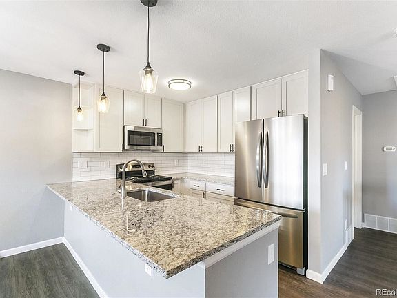Beautifully remodeled (fully permitted) 3 bed/2 bath end-unit ranch townhome with full finished basement and large private outdoor space. New laminate flooring on the main level, fresh paint and updated lighting throughout. All new kitchen with soft-close Shaker cabinets, stainless appliances, granite counters and tile backsplash. The main floor features an open concept with the kitchen open to the dining and living areas. The main floor full bath has access from the master bedroom and has been remodeled with custom subway tile tub surround, new plumbing fixtures, new vanity/sink and tile floor. The finished basement features a huge living area/flex space with recessed lighting and a non-conforming bedroom (no egress), all with new carpet, a brand-new 3/4 bath and a large laundry room with new LVT flooring. Cherry Creek schools and close to shopping, restaurants and entertainment with easy access to I-225 and E470.