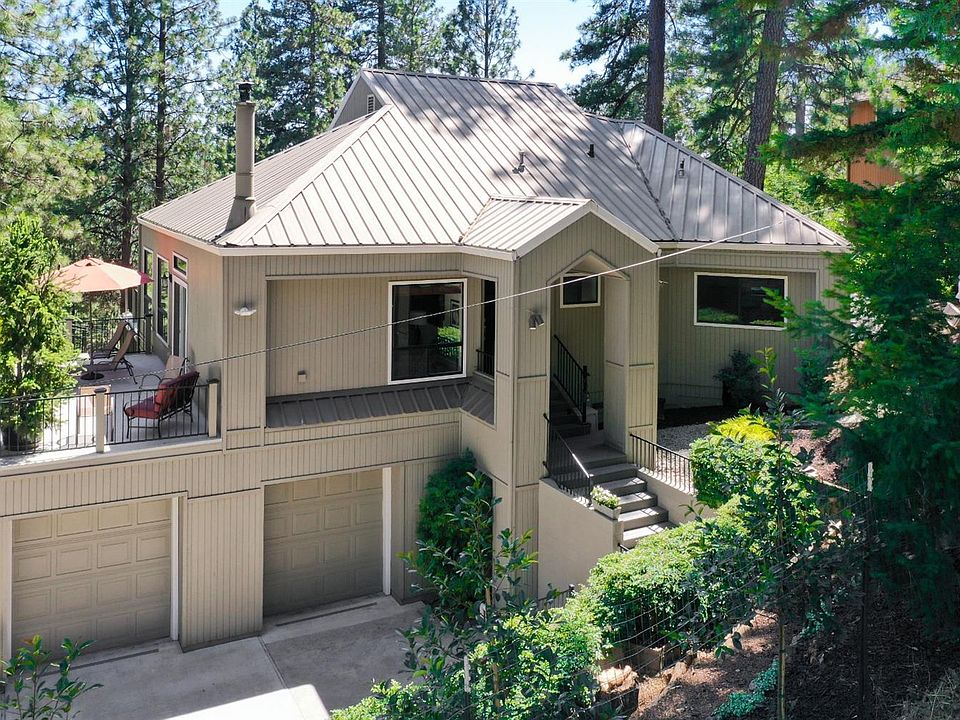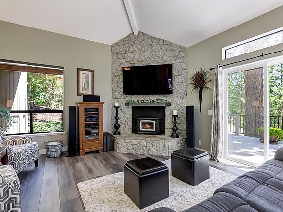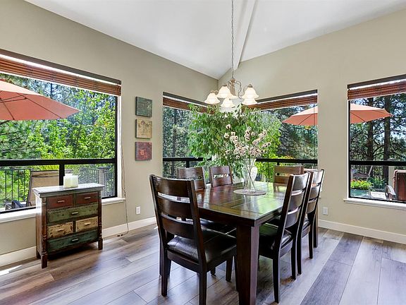 Stunning contemporary style custom home with open floor plan and impressive vaulted ceilings. Bright and light with large windows and skylights to take in local views and treed setting. Showpiece fireplace in living room with large adjoining deck, plus a gorgeous entertainment deck off dining area. Updated kitchen with beautiful quartz countertops and nicely painted cabinets. Great square footage with large master suite on the main floor and another bedroom and bath. Downstairs is a huge laundry room with a craft area and plenty of cabinets, two large bedrooms, outside access, and another full bath. Lovely landscaping surrounds this gorgeous home. Two-car garage with room for boat or trailer. Move in ready and a wonderful place to call home.