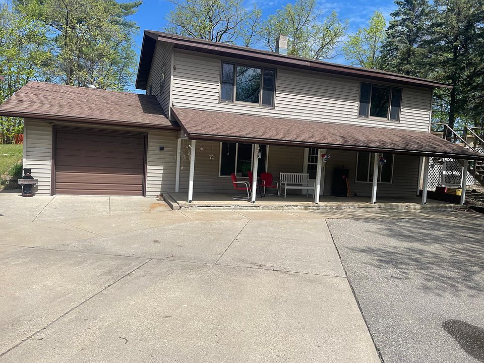 Drive into your own little paradise, with its park like setting, beautiful paved driveway, private yard, surrounded by mature trees, wildlife galore, landscaping, large set alone backyard patio with built in fire pit, lake views. This home features 7.5 gorgeous acreage, wrap around deck, newly updated kitchen, flooring, central vac. Shingles less then 10 years old, A Dbl detached sheet rocked, heated garage. 3 bed 2 bath, large closets for extra storage space, with walkout basement onto a concrete patio.