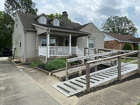 Two bedroom bungalow includes large modern bathroom, living room, laundry room, formal dining room, and galley modern kitchen on main level. Beautiful hardwood floors. Second floor finished attic could be used for two more bedrooms. Nice basement. Gas forced heat. Well maintained home near park and schools. Front porch can be accessed by stairs or ramp - handicapped access