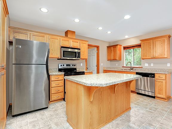 Surrounded by peaceful, gorgeous wooded/territorial views. Living area feat gas fireplace as focal point. Spacious dining room opens to kitchen featuring spacious countertops, SS appliances, & middle island with space for seating. All appliances included! Upper level includes three large bedrooms, & spacious master bedroom with ensuite bath, and spacious closet. Sliding doors from the dining room lead to the large private wooden deck. Minutes from Boeing, downtown Everett, and Highway 99.