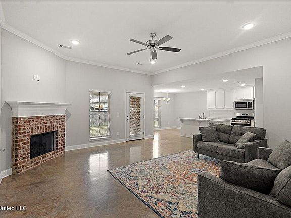 - Ceiling Fan(s), Crown Molding, Double Vanity, Kitchen Island, Open Floorplan, Tile Counters