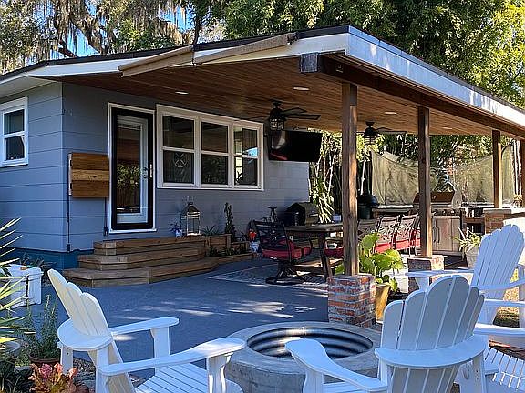 This home has been renovated from top to bottom. The roof was replaced in Aug 2015, the exterior was painted shortly after that. Brand new windows finished off the exterior. The kitchen was remodeled 3 years ago with new cabinets, quartz counter tops and all new appliances. Both bathrooms have been updated as well as the rest of the house. There is a 400 sq ft covered outdoor patio with custom outdoor kitchen. The outdoor kitchen has a cooktop and gas grill with concrete counter tops and extra seating. The entertainment area also includes a custom concrete fire pit and hook up for an outdoor TV. This house also has a brand new AC unit installed in 2020. It has a one car garage but does have extra covered parking. Last but not least this home features a hard wired 4K video surveillance system.