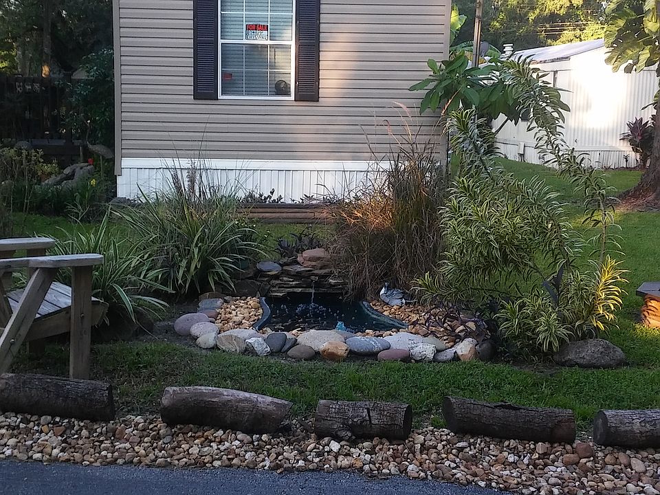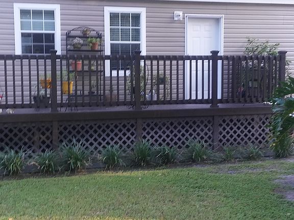 Has feal teak wood in living room well maintained ref and stove color are black elec stove washer and dryer hookup in house AC has a 10 yr warranty on parts carpet in both bedrooms ceiling fans in living room and both bed rooms mini blinds in every window. Lot rent 370.00 a month must have back ground check to move in largest lot in park. May have a small dog or cat my phone number is 813 574 9422also has well water and dumpster included in rent mailboxes on premises8