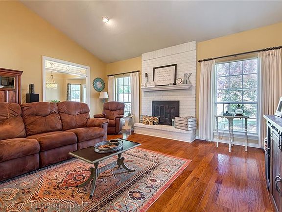 Fantastic 3Br-2.5Ba in circle street neighborhood (no through traffic!) with direct access to bike trail. Hardwood floors in living room with grand cathedral ceiling. 9 ft ceilings in kitchen and bedrooms! Large laundry room with 1/2 bath. Spacious kitchen with new tile floor. Master bath has walk-in shower, whirlpool tub, double vanity and walk-in closet Newer water heater. 2 covered patios! One off the kitchen and one off the master bedroom. Firepit. Large storage shed. Move-in ready.