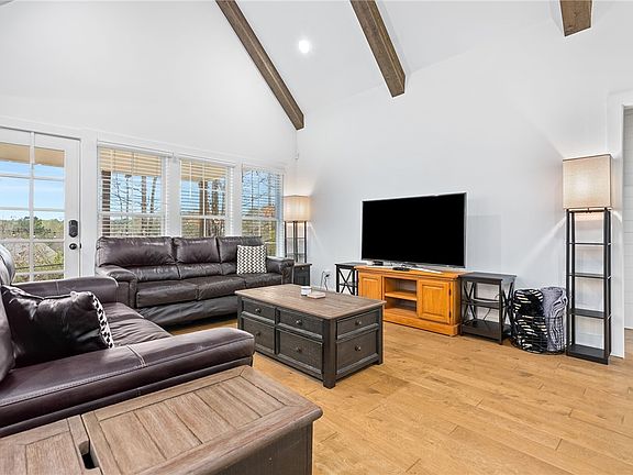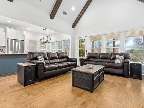 Nestled on an appropriately sized lot with a picturesque backyard, this charming residence offers a perfect blend of comfort and convenience. Step inside and be greeted by the allure of modern living paired with thoughtful design touches. Equipped with cutting-edge technology, this home boasts a comprehensive smart home system that puts control at your fingertips. Plus, rest easy knowing your home is monitored with a video doorbell, front, and back cameras, all easily accessible through the accompanying app. The heart of this home lies in its inviting living room, where soaring, vaulted ceilings adorned with rough-sawn cedar faux beams create a dramatic yet cozy atmosphere. Illuminating the open-concept kitchen and the first-level master bedroom complete with an ensuite bath featuring an oversized double vanity. Upstairs, discover two generously sized guest bedrooms offering comfort and privacy, along with ample attic storage conveniently accessible from the second level.