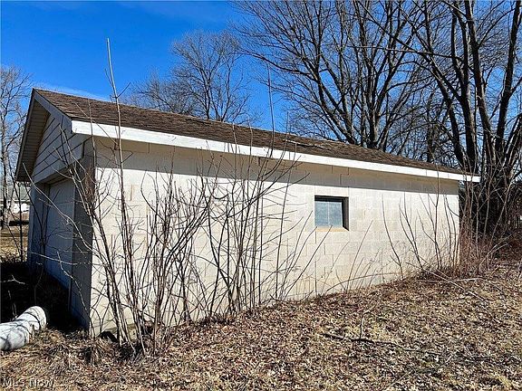 Large corner lot with sturdy 2 car cinder block garage. There was a home previously on the property, and all utilities are available.