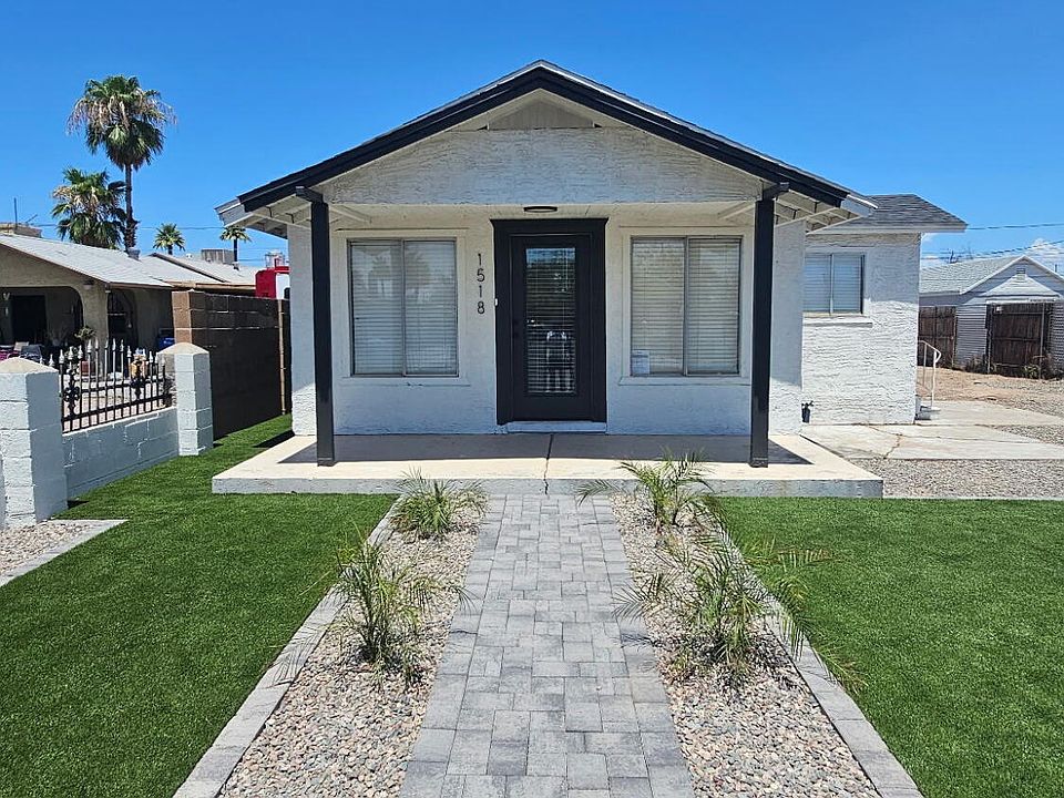 Experience vibrant city living in this updated 2BR bungalow near Roosevelt Row in the Garfield Historic District. Classic charm meets modern style with wide plank LVP flooring, new turf, a gated drive, and a spacious lot—plus no HOA! Minutes from ASU, UofA, dining, arts, and entertainment. Stylish, walkable, and full of character—your urban retreat awaits. 2 Bedrooms, 1 Bathroom, HUGE 7300 sq ft lot (Ideal space to build a Garage, build a house (& use the current home as a rental/casita), perfect for a first time home buyer, investor, ADU builder, Future Duplex, Instant cash flow opportunity, SHORT TERM RENTALS ALLOWED, etc... Gas Range, Brand New Flooring in September 2025, View Fence, Wrought Iron & Block Fencing, Taxes are only approx. $1500 per year, Wallace Tract, Garfield Historic District