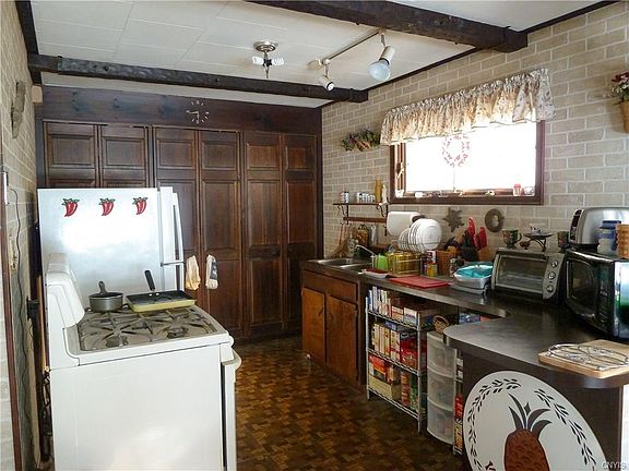 This charming two-bedroom ranch style home holds great potential for anyone looking for a quiet street in desirable Eastwood. The kitchen adjoins a spacious dining/country kitchen area with abundant natural light. The very large covered porch opens to the fully fenced back yard and would make a great place to relax during the summer. Offering central A/C for the summer and a wood stove in the basement, you can assure your comfort level at any time of the year. Consider this home as your blank canvas to express yourself with a little TLC. Being sold, "as is", this home is expected to become a short sale with all offers being subject to bank approval.