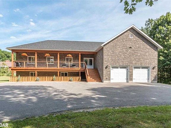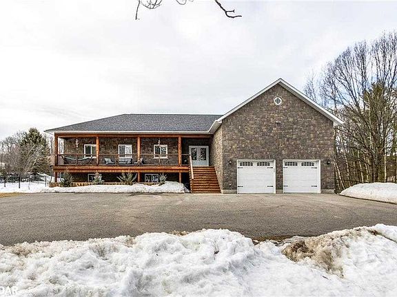 This 9 year old custom built, open concept home features approx. 4500 sqft of finished living space. It is a must see home with 7 bedrooms and 4 bathrooms. The main floor features a large entryway into a chef inspired kitchen with custom hardwood cabinetry, quartz counter tops, island and stainless steel appliances. The kitchen over looks a large family room with a natural gas fireplace and patio doors leading out to a spacious deck over looking the fully fenced .829 acre lot. The main floor has 2 master bedrooms complete with ensuite and walk-in closets on either end of the home, followed by 2 additional bedrooms which could double as home office space and an additional 4 piece bathroom perfect for a large family. You proceed down the custom hardwood staircase to the the lower level of the home into another large open concept living space. This perfectly setup in-law suite features another custom build kitchen with granite countertops, with stainless steel appliances and gas range. The lower level also features 3 more large bedrooms and another 4-piece bathroom, with a full walk-out to a patio with natural gas BBQ hook up and hot tub. Perfect for entertaining! With no expenses spared, other notables include: oversized 2 car garage with loft storage, laundry/mud rooms on both levels, large bonus room downstairs perfect for a home gym, separate entry into both levels and a large covered porch. Across from Midland Golf and County Club, a short drive to local marinas and Georgian Bay- this home offers everything. Don't miss your opportunity to own this master piece. ,