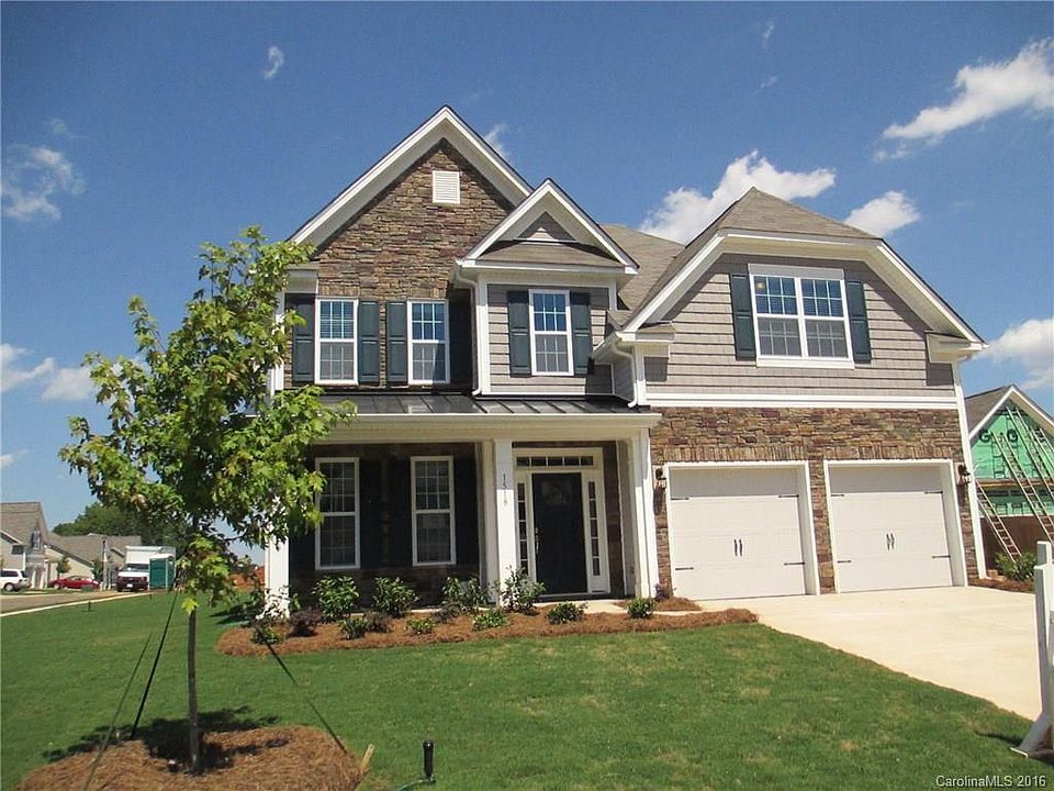 Beautiful 5 bedroom, 3 bath home- the 5th bedroom can be used as a bedroom or a bonus rm! This home called the "Fleetwood" is MOVE-IN READY! Gorgeous stone front w/ a rocking chair front porch. Large corner homesite w/ an awesome backyard (over a third of an acre). Open layout w/ Kitchen onlooking the family rm., which includes Fireplace, hardwoods & beautiful trim detail. The kitchen is appointed w/kitchen island, granite countertops, stainless appliances, backsplash, pendants & recess lights.