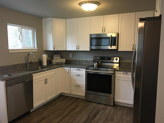 Completely renovated house on quiet street, available for rent starting December 12, 2022. This 1000+ sqft house has durable luxury vinyl planking throughout, upgraded kitchen with granite countertops and stainless steel appliances. Updated full bath and half bath, with built-in storage shelves. All lighting is LED and house is very energy efficient. Fireplace in main living area set to heat the entire house. Property includes stacked washer/dryer in the house as well as a 10' x 12' storage shed in the backyard. 2 bed, 1.5 bath. Great location in town close to stores, schools, parks and Starbucks; centrally located. No pets, no smoking. One year lease available. First month's rent plus $950 damage deposit. Tenant pays all utilities and maintains all landscaping to landlord's specifications. Strict no pet policy. Tenant pays all utilities and maintains landscaping to landlord's specifications. No housekeeping is offered from landlord. Detached garage for owner use only.
