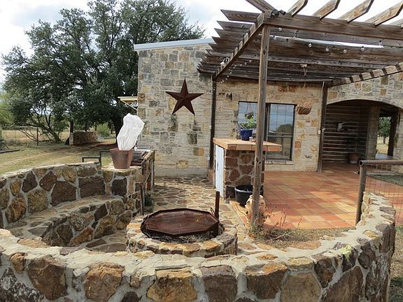 Spacious Country home, very convenient to Mason, with beautiful acreage, perfect for horses, livestock, 4H/FFA projects. Home has two living areas, open kitchen/living/dining area with stone fireplace. Stained concrete flooring throughout, large walk-in closets, outdoor pergola w/stone firepit/cooking area & seating. Also, 30x30 covered porch, attached carport. The perfect home for entertaining! Stone exterior, metal roof, all electric-easy maintenance! Older stone shed and storage building.