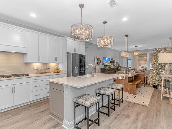 Nestled in the heart of Del Webb North Myrtle Beach, the ultimate retirement destination, this stunning single-story home showcases exceptional upgrades and embodies the sought-after lifestyle of a vibrant 55+ active adult community. Situated on a premium pond lot, this home combines luxury, functionality, and picturesque views, making it the perfect retreat for relaxed yet active living. Step inside and be greeted by an inviting, open-concept living space painted throughout in the versatile Agreeable Gray. The upgraded gourmet kitchen is a chef’s dream, featuring a gas range, double wall ovens by KitchenAid, a wood hood, quartz countertops, a single-basin farmhouse sink, a tile backsplash, under-cabinet lighting, and soft-close cabinets, including a built-in trash can cabinet. Designer pendant lighting illuminates the two-toned kitchen island, creating a perfect focal point for entertaining. The spacious master suite offers serene pond views, a luxurious chandelier, and a beautifully appointed en-suite bathroom with upgraded tile flooring, a glass-enclosed walk-in shower, double vanities, a walk-in closet, and a linen closet for added storage. A guest bedroom and guest bathroom with tile flooring and a tub-shower combo provide comfort and privacy for visitors, while a flex room with a closet adds versatile space for an office, hobby room, or additional guest accommodations. The home’s thoughtful details continue with a laundry room featuring cabinets and included washer and dryer, upgraded flooring throughout, and a Lennox HVAC system with a filtration system for added comfort and efficiency. Outside, the screened porch with privacy shades and an epoxy floor offers a tranquil space to enjoy the pond views, while the grilling patio is perfect for outdoor dining. The epoxy-coated front porch and freshly painted front door add to the home’s curb appeal. The oversized two-car garage features epoxy flooring, painted walls, granite-topped cabinets, and pull-down attic stairs for abundant storage space. Del Webb North Myrtle Beach enhances your lifestyle with resort-style amenities, including a 12,000-square-foot clubhouse, state-of-the-art fitness center, indoor lap pool, outdoor zero-entry pool, tennis, pickleball, bocce ball courts, and scenic walking trails. A full-time lifestyle director ensures there’s always something exciting happening, from social clubs to cultural events. Located in the heart of North Myrtle Beach, this home places you just minutes from pristine beaches, vibrant local events, boutique shopping, and fine dining. With a mild climate, retiree-friendly tax policies, and proximity to excellent healthcare, North Myrtle Beach is the perfect place to call home. Don’t miss the opportunity to own this exceptional property in one of the most sought-after communities on the Grand Strand. Schedule your private tour today and start living the retirement of your dreams!
