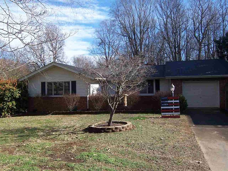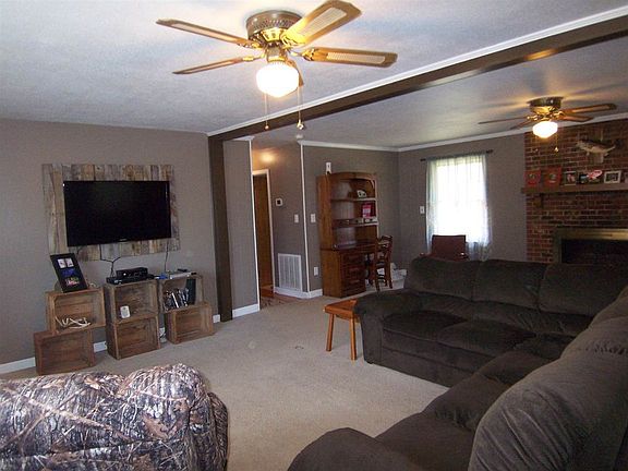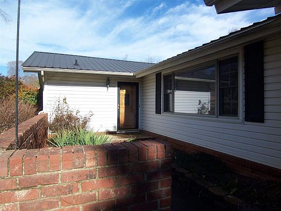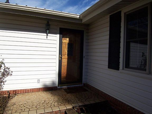 Nice brick ranch has courtyard entrance and large backyard. Large living room has fireplace with gas logs. Designer colors throughout. Hardwood, carpet, and tile flooring. Beautiful tile shower in master bath. The 1066 sf basement is heated and cooled and has a wood-burning fireplace. Back yard borders a small creek.