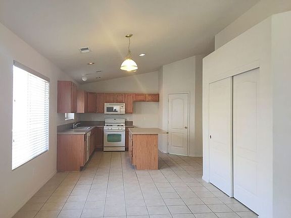 Large 3BR with lots of living space - Formal dining/living area, family room with gas log fireplace open to spacious eat-in kitchen w/island. Kitchen appliances include gas stove, microwave, and dishwasher, great cabinet/counter space and large pantry. 2 Spacious spare bedrooms, open office in hallway, full hall bathroom w/linen closet. Window blinds, tile and carpet flooring, large laundry room has washer hook-up and gas or electric dryer hook-ups. Backyard with large covered patio, fully fenced and rocked, 2 car garage with remotes. Refrigerated A/C. Cabezon subdivision with walking trails and parks throughout neighborhood. DIRECTIONS South on Unser from Southern R on Cabezon L on Western Hills R on Tulum R on Soave L on Montiano Rental Terms: Rent: $1,595, Application Fee: $40, Security Deposit: $1,595, Available Now This property allows self guided viewing without an appointment. Contact for details.