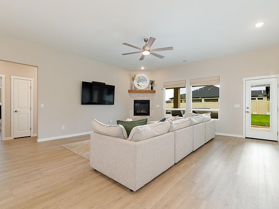 Impeccably designed and completely move-in ready, this home offers effortless single-level living with no steps and an inviting open-concept layout. Inside, you'll find stylish LVP flooring throughout, a spacious great room anchored by a cozy fireplace, and abundant natural light. The kitchen features quartz countertops, under cabinet lighting and a walk-in pantry with plugs for appliances. The primary suite is privately positioned and offers generous space, while thoughtful storage solutions are found throughout the home. A large 3 car garage with epoxy flooring and mini-split provides room for vehicles, hobbies and gear. Outside, the professionally landscaped front and back yard offer beauty and privacy, fully fenced and well-maintained. This home offers comfort and convenience in one exceptional package, book your private showing today.