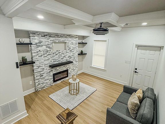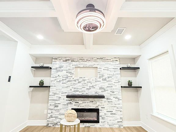 Sleek electric fireplaceStone accent wallPremium finishesAdded security and privacyModern bathsStainless steel appliancesPrivate driveway